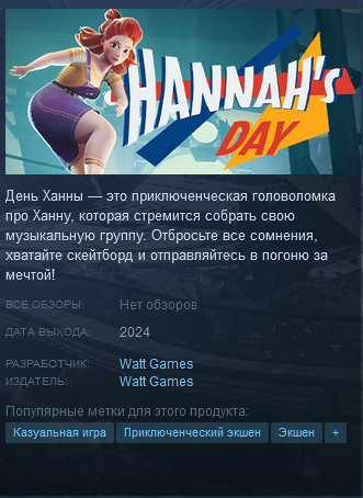 > Наши попытки прийти к компромиссу упёрлись в чужое молчание — издатель просто перестал нам отвечать, оставив у себя доступы к странице в Steam и некоторым соцсетям. > В ответ мы вооружились юристом, переименовали игру и снова зарегистрировались в сторах, чтобы выпустить День Ханны — пусть и через 2 года после того, как была завершена работа над игрой.