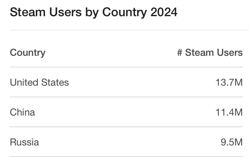 Почему даже? РФ это топ 3 юзеров стима. Поэтому Габен и послал нахуй отменяльщиков России после 24 февраля. Это Макдональдсу легко было уйти, так как на РФ в их выручке меньше 1%, но не стиму.
