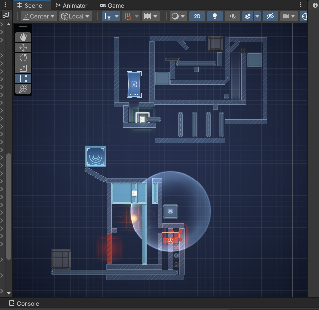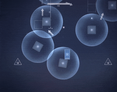 Интерактивные анимации и измерительные линии образуют строгую атмосферу чертежа. Световые эффекты и испускаемые частицы привносят насыщенность и яркий контраст