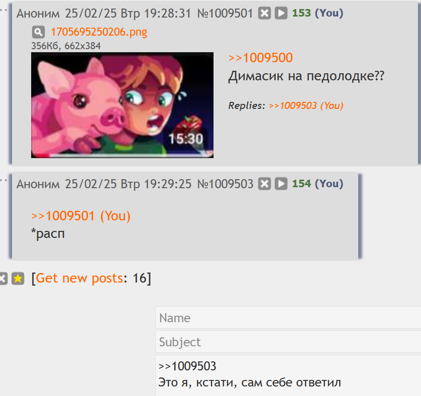 >>1010046 Да просто привёл пример более-менее актуальный. Это тебя в каждом посте преследует Серёга, кто бы говорил о ЧСВ. Никогда не поверю в случайного анончика, который мимо шёл, и вдруг "настолько заебало его серунство, что невозможно молчать".