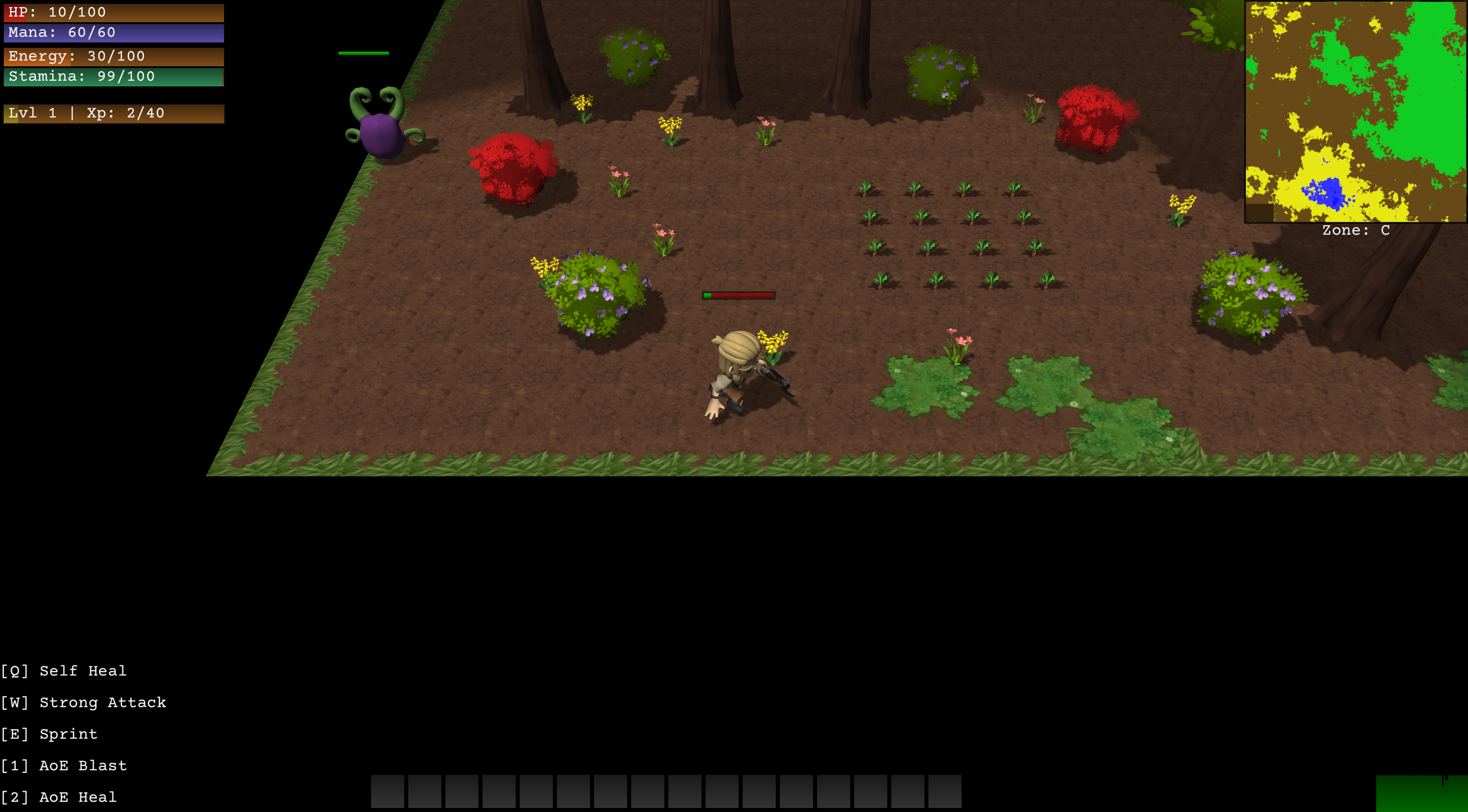 Зачатки фермы сделал. Морковочка растет и собирается. Боевку переделал на более кнопочную. Мобов стало кайтить вполне себе весело. Пытаюсь немножко vfx делать, сделал слеш шейдер супер простеньнкий. Надо уй подлатать и ассетов доделать.