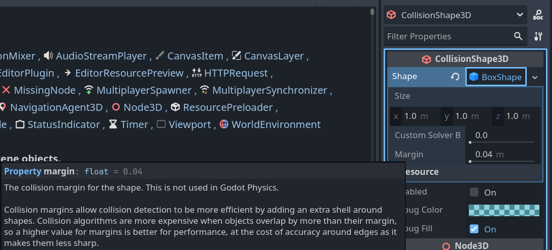 >>1022045 → >Выглядит так, что они слишком мелкие, и просто успевают набрать большую скорость чтобы пробить коллайдер Потестил - действительно, через CSGBox3D проваливаются мелкие коллайдеры, например цилиндр высотой 0.201 и радиусом 0.031. Но стоит увеличить радиус в 2 раза, как проблема пропадает. Ну или заменить CSGBox3D на StaticBody3D. Короче, АБСОЛЮТНО, неочевидная какая-то хрень Благодарю