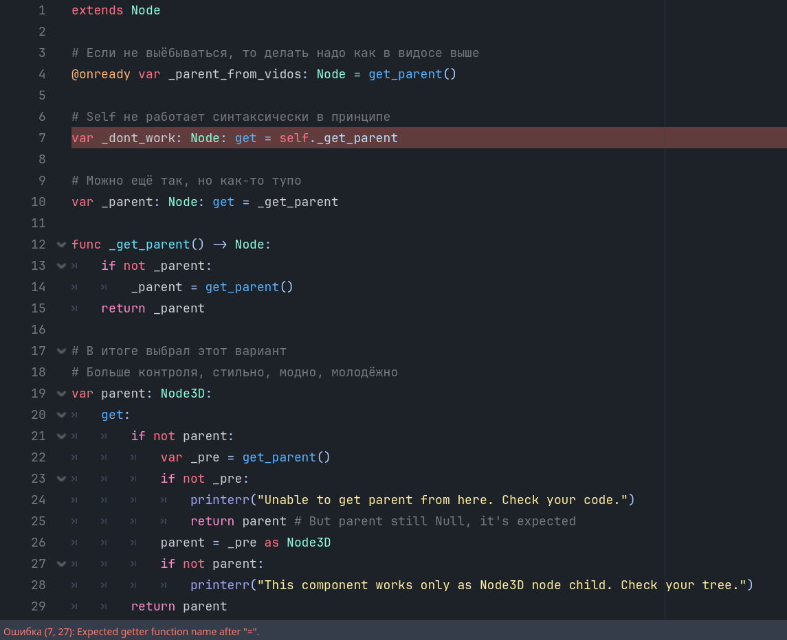 Теперь это тред охуительных советов Сегодня узнал, что можно принтить из _процесса и не переполнять аутпут, используя: if Engine.get_frames_drawn() % 60 == 0: print("Zoom: ", current_zoom) Будет один принт в секунду Круто же! Ранее какую-то хуйню велосипедил для этого