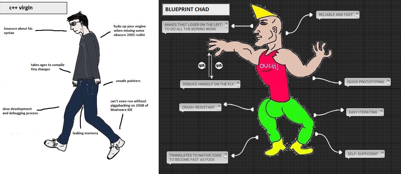 Учу анрил с гопотой. Спрашиваю как прожектайл сделать побырому в блюпринте он говорит ну вот юзай тик или таймлайн, говорю тик нельзя не хочу привязывать к фпс, он говорит тогда таймлайн. Ок, сделол, всё равно привязано к фпс, он такой ну да надо было юзать PROJECTILE MOVEMENT COMPONENT - сука если в анриле есть встроенный компонент для этого нахуя ты мне советуешь сперва что угодно кроме него? Ебанись блять.