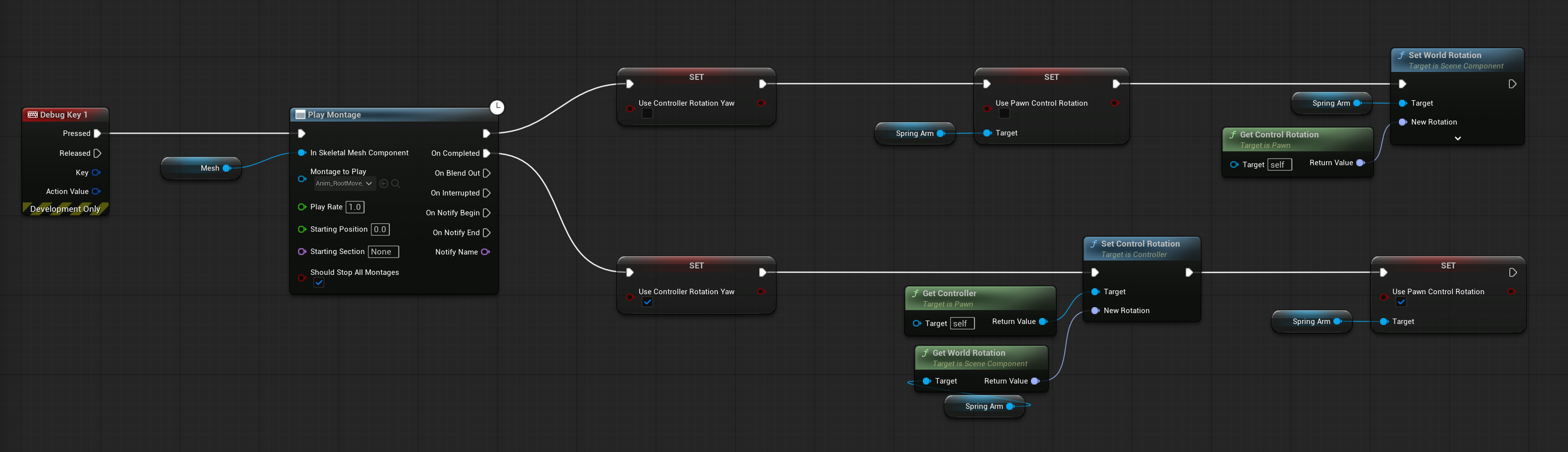 АНОНЫ МОЛЮ ПОМОГИТЕ. У меня в Аним монтаж анимация разворота персонажа на 180 градусов (анимка надевания наручников). И короче у меня из-за того что включен controller pitch Yaw rotation камера остается на месте и персонаж не поворачивается. Пробовал отключать в блупринте на время эту галочку, но потом камера на месте остается. А потом я насрал как на пике поворот player controller на 180 градусов в ручную и все заработало. Но сука как без костылей сделать то блять? Анимка правильная, с поворотом root и со всеми настройками. Но ебаный player controller не дает развернуться, а если на вермя отключить yaw, то камера не крутиться. Неужели нельзя без скрипта для ручного поворота контролера или камеры? Хелп