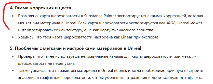 Поясните за отмеченные пункты? Это действительно так? я щас столкнулся с тем, что мой сетевой фильтр адекватно выглядит в блендере и сабстансе, но в анриале, если просто подключить карту, поверхность как будто становится глянцевой слишком. Я поправил лерпом, но суть происходящего не уловил