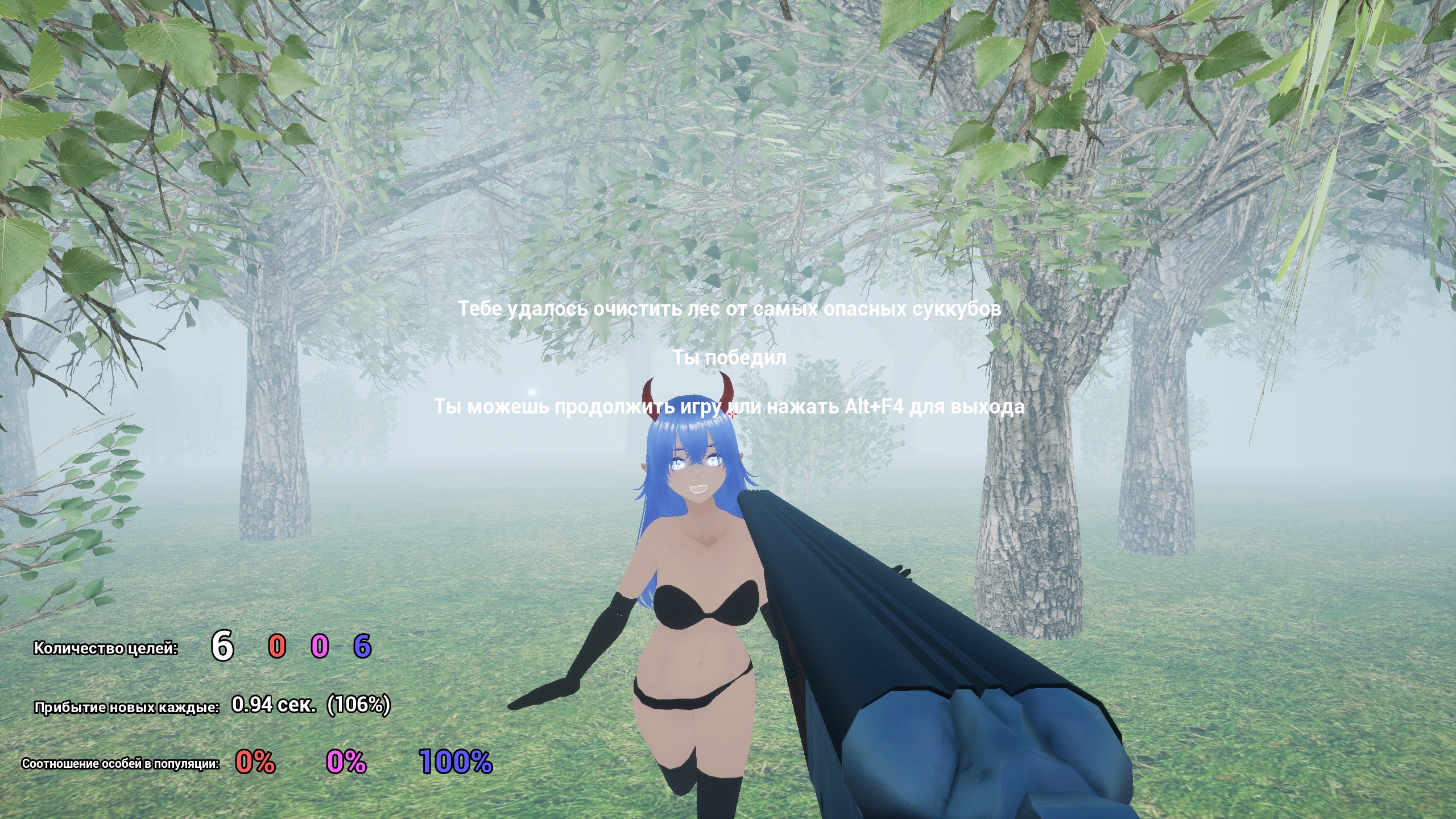 Succubus Hunter Игра о том, как надо бежать в объятия аниме-суккубок и размножаться. Игра коротка, длится всего три секунды. Не понял, зачем мне еще одно ружьё (которое в руках). Самое главное не показано, я недоволен. Подход к теме: бесконечное размножение с суккубами