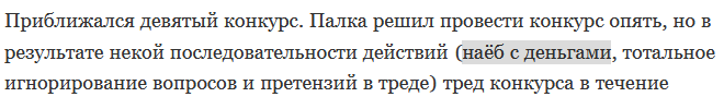 Получается, участник делает пользу конкурсу и делает хуже себе.
