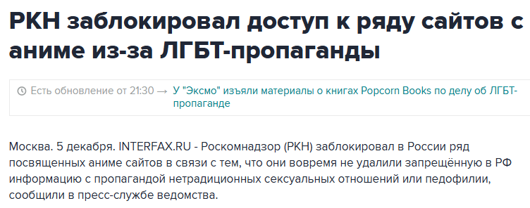 >>1032439 > должно было быть иначе на 18+ борде Ебать какие долбоящеры тут встречаются. То есть ты за соблюдение мелкого пункта правил (который добавлен чтобы отбиваться от проверяющих органов) А ты в курсе что п.1 правил борды гласит Не нарушайте законы России и страны, в которой Вы находитесь в данный момент. То есть, ты утверждаешь что находясь на бордах никогда никогда не нарушил ни один даже самый мелкий закон? Не пропагандировал случайно гомосексуализм, не постил экстремистскую тетрадь смерти, не разжигал межнациональную рознь и так далее?