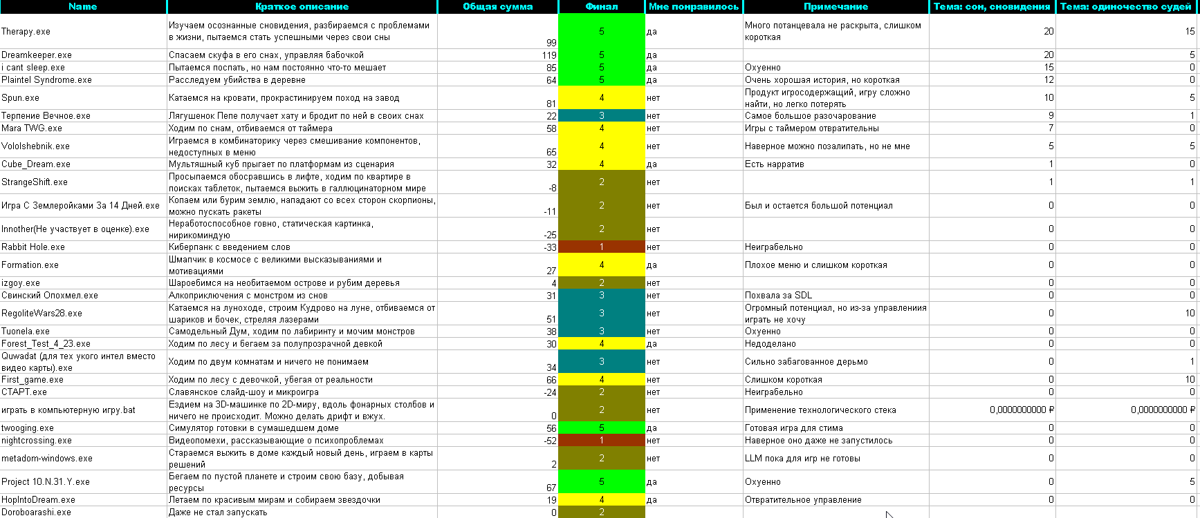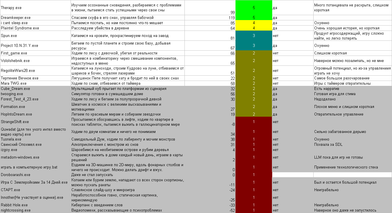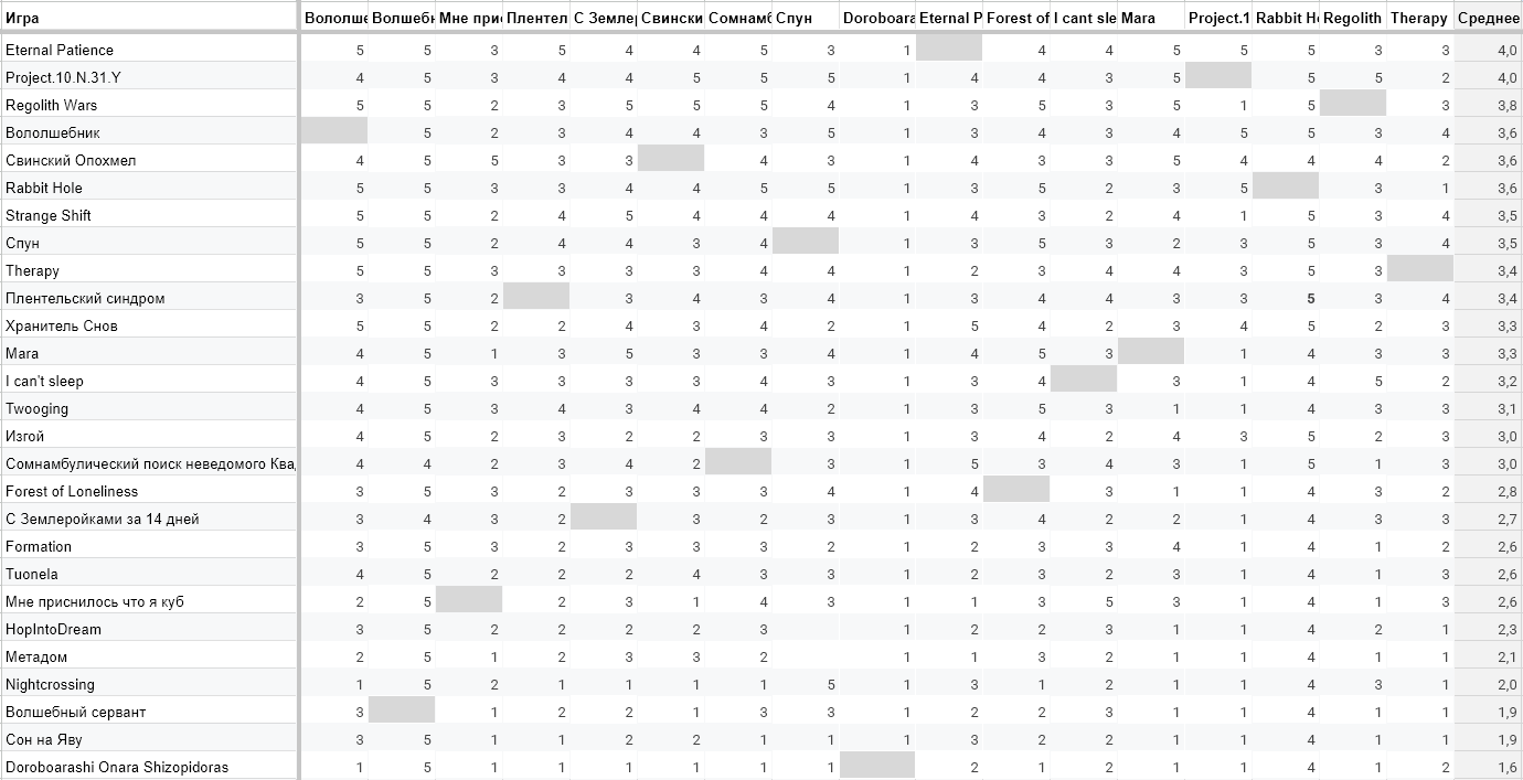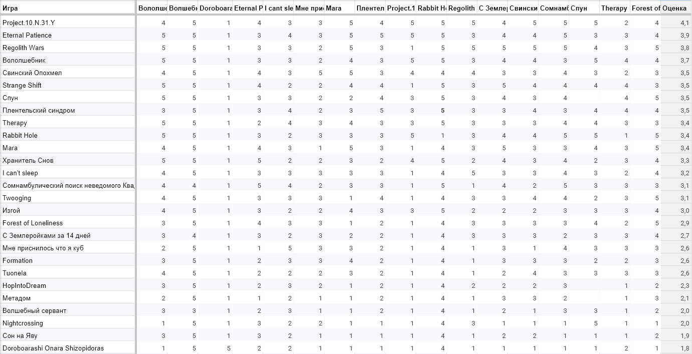 Просто интереса ради: Таблица - игры, которые понравились разработчикам Проджект бы всё равно первое место занял, но вот терапия и мара бы сильно улетели вниз, возможно, 2 и 3 места бы стали совсем другие