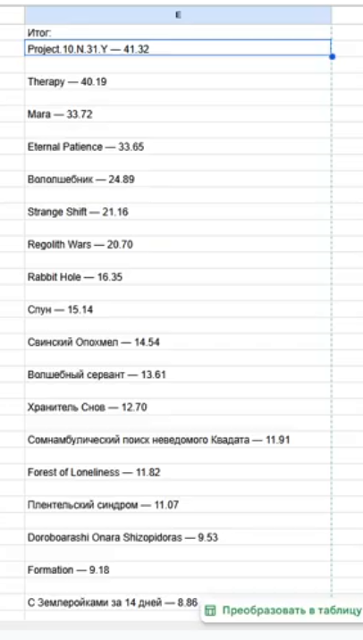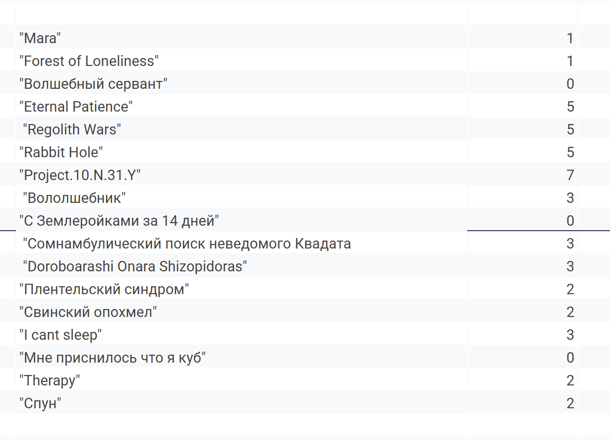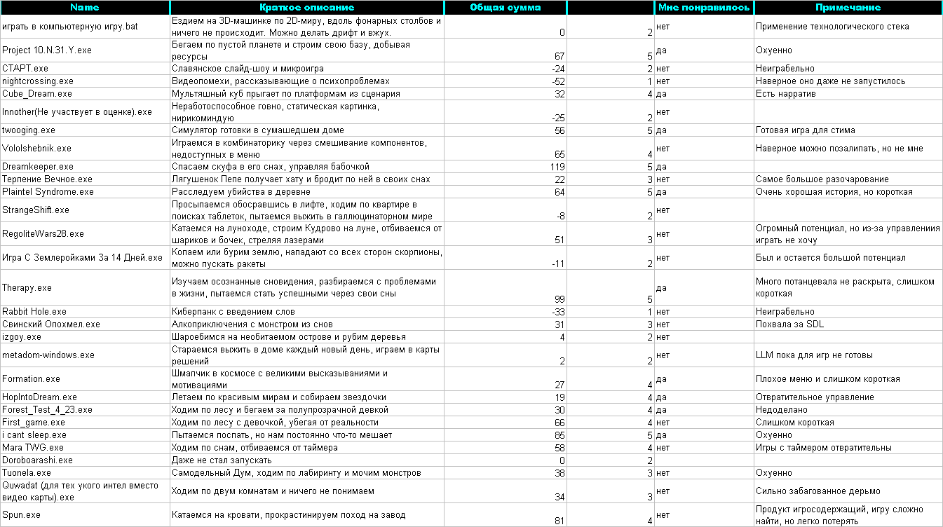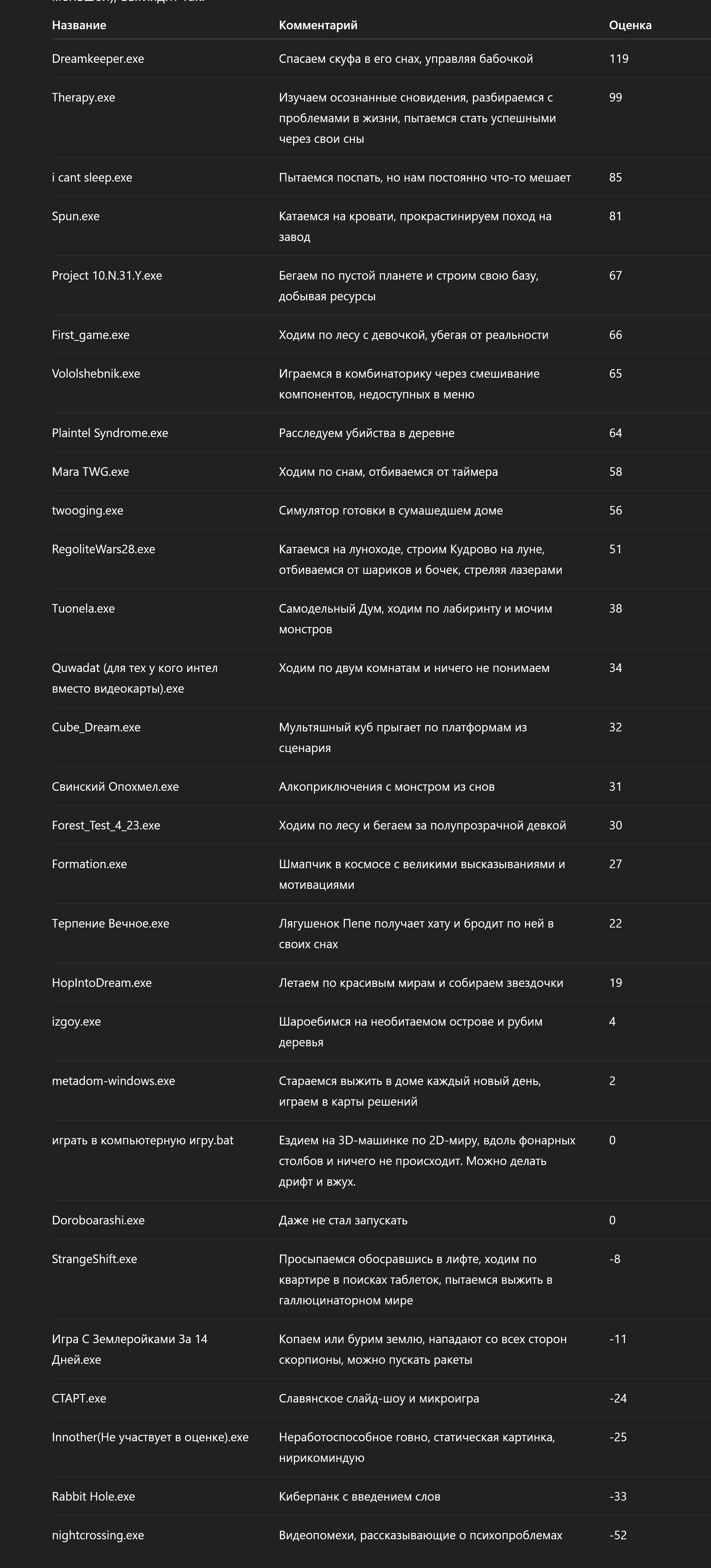 Просто интереса ради: Таблица - игры, которые понравились разработчикам Проджект бы всё равно первое место занял, но вот терапия и мара бы сильно улетели вниз, возможно, 2 и 3 места бы стали совсем другие