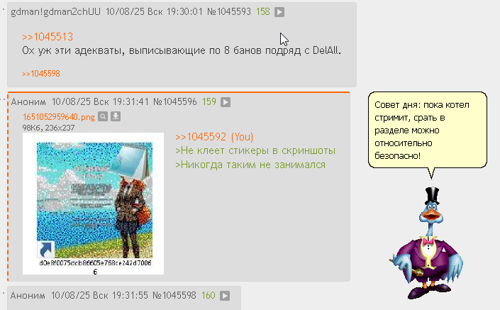 >>1045593 Совет дня: пока котел стримит, срать в разделе можно относительно безопасно!