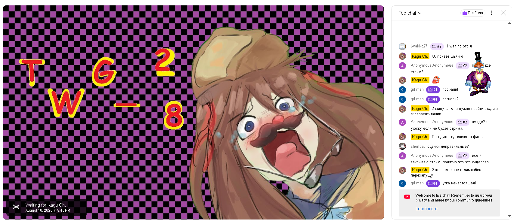 >>1045622 Когда начинал смотреть этот цирк, хотелось запустить свой стрим поверх него и комментировать, какой же он долбоеб. Потом понял, что он слишком унылое говно, чтобы даже комментировать его. Потом осознал, что он настолько говно, что даже часть игр не смог посмотреть, дропнув их в начале. Хуже этого залетного никто не мог бы справиться... И тут ко мне пришла гениальная идея: есть отличный претендент на звание следующего организатора TWG. Даже кринжовая аватарка уже есть, "раутить звук" уже умеет, осталось только войс-морфер поставить и новый ОРГ готов!
