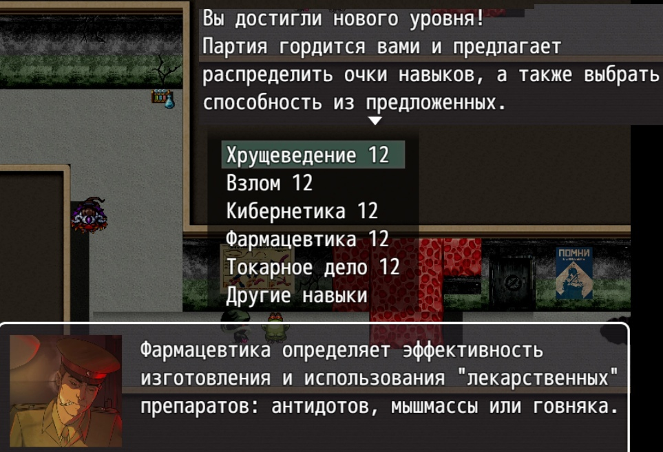 С повышением каждого уровня вам будет предложено вкачать очки в определённые навыки, которые отвечают как за боевые способности персонажа (умение пользоваться топливным или огнестрельным оружием, скрываться и наносить атаку из скрытности), так и изготовление боеприпасов, медицинских препаратов из слизи и даже специальный навык «бюрократия», позволяющий лучше писать документы о выполнении заданий (увеличивает награду) и доносы (позволяет избавиться от неугодных игровых персонажей).