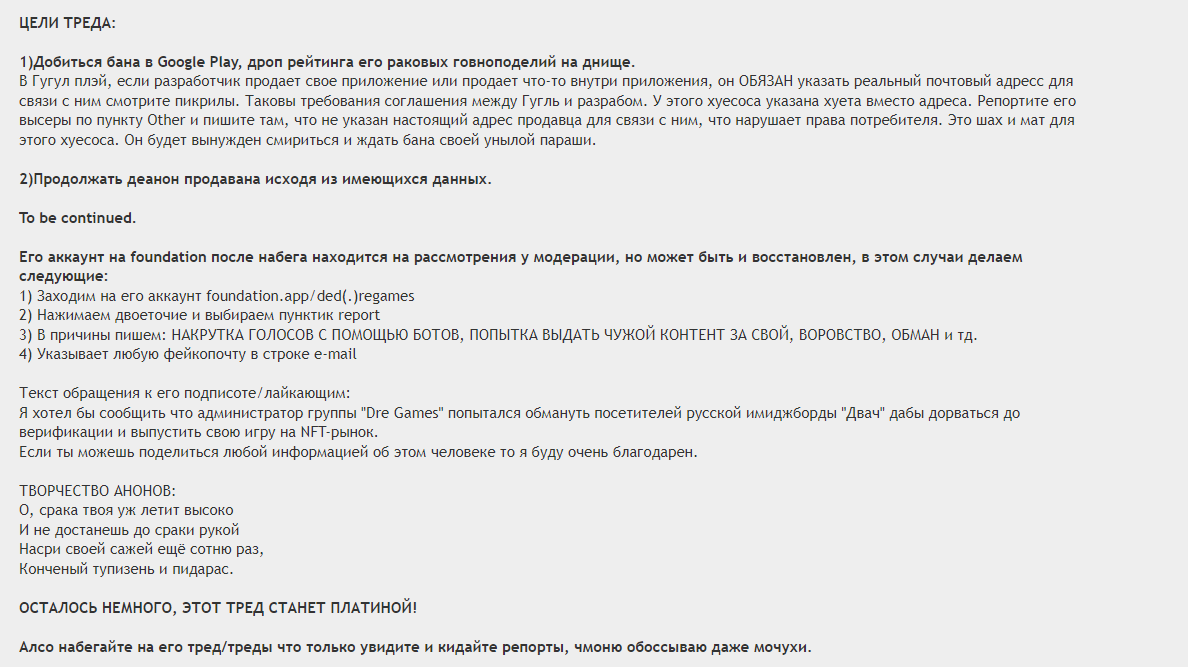 >>971915 >Например, один NFT расширяет инвентарь, а другой увеличивает дамаг внутри какой-то игры... Но зачем тут NFT? Легализация трейда между игроками. Одному игроку надоела игра и он продает расширитель инвентаря другому за деньги. Другой нашел оружие лучше и обменивает старое оружие на другой предмет. >Если игра сдохнет, то все связанные с ней токены окажутся бесполезными, как обычные числа на блокчейне. Вопрос интересный, Гипотетически можно поднять клон игры (как иногда комьюнити пересоздает закрытые ммо). И подтянуть данные из лохчейна что у кого есть. Гипотетически могут быть коллабы в духе САО (если у тебя был мечник в закрывшейся игре, получишь уникальную пушку в другой игре). Гипотетически даже у неиграющих абилок может быть коллекционная ценность (как десятки лет назад забаненные карты мтг имеют ценность несколько тысяч баксов). >А выводить деньги из централизованных ММО умели задолго до появления всех этих блокчейнов. Легально это почти никогда не было. Это банилось, даже если нечистые на руку менеджеры сами этому потакали (помню всякие хоррор стори про лайнейдж два)