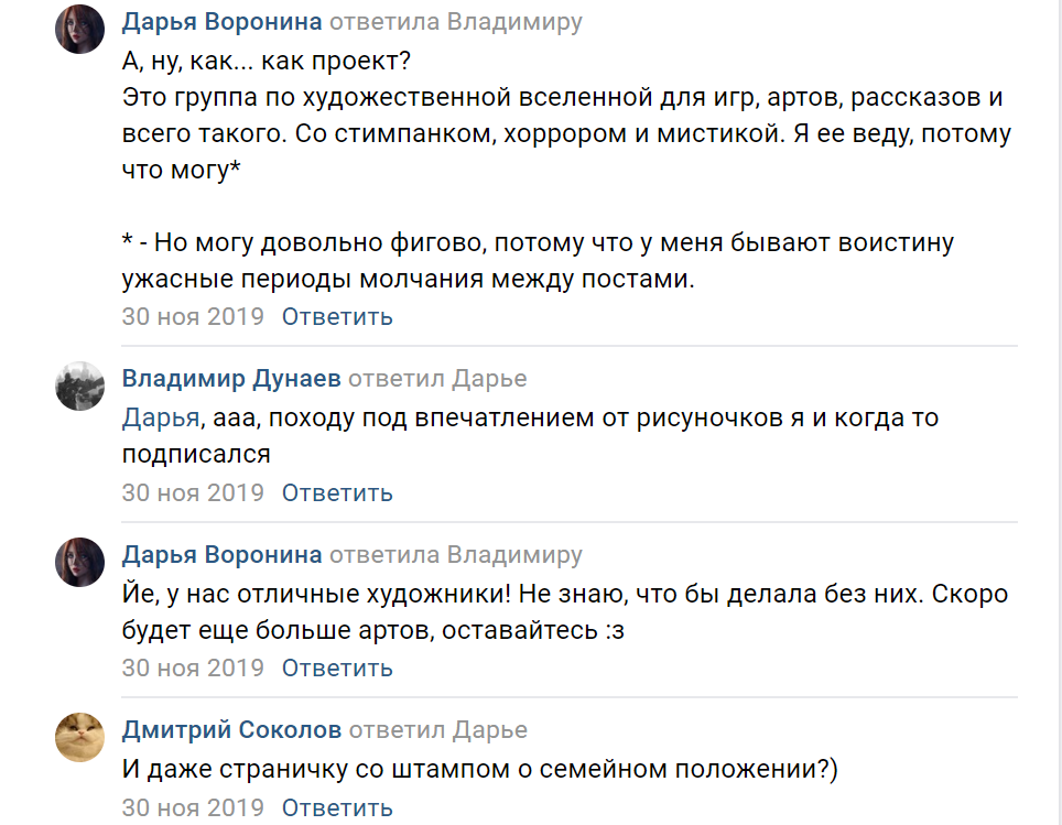 >>648354 Ну вот представь, что ты серый, безыдейный чухан без скиллов, ни во что не могущий, но хотящий чувствовать себя гейм девелопером. Учиться и качать скиллы ты понятное дело не хочешь, у тебя 6к часов в доте, и надо еще столько же потратить на эту замечательную игру. Пока ты один, тебе сложно убедить самого себя в том, что ты гейм девелопер. Поэтому вся эта серая биомасса сбивается в кучу, начинают лизать друг другу очко, нахваливать друг друга. И вот, вроде бы никто нихуя не сделал, но зато ты все вместе - геймдевелоперская тусовочка. На разработку игр, естественно, времени уже нет, они общаются в конфочках, ведут паблики в вк о разработке игр, снимаются в фильмах у ОПа. Скоро начнут картонные медальки и ордена друг другу раздавать за вклад в инди геймдев.