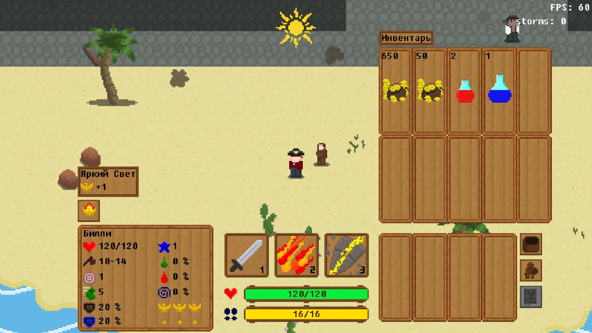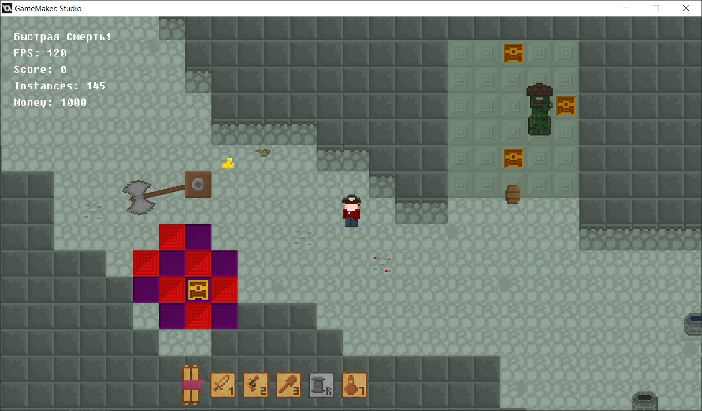 Только-только закончился TWG, а вдохновение осталось. Значит, нужно продолжать пилить свое поделие влажно мечтая о релизе. Тред существует как мой дополнительный мотиватор для продолжения разработки (ну и отчетник, если кому-то будет интересно наблюдать за процессом). Жанр: roguelikelite, adventure Платформа: GameMaker Pro 8.0/GameMaker Studio 1.4 Плаваем на корабле по постоянно меняющемуся океану, посещаем острова в поисках сокровищ, исследуем пещеры и подземелья(new!), собираем части артефакта, указывающего путь к источнику бессмертия. Со времени конкурса концепция игры была пересмотрена - теперь это Dungeon Crawler, прикрученный к морским путешествиям. Системы инвентаря как таковой нет - вместо этого ГГ получает бонусы от найденных кладов/артефактов и новые инструменты для аннигиляции многочисленных монстров.