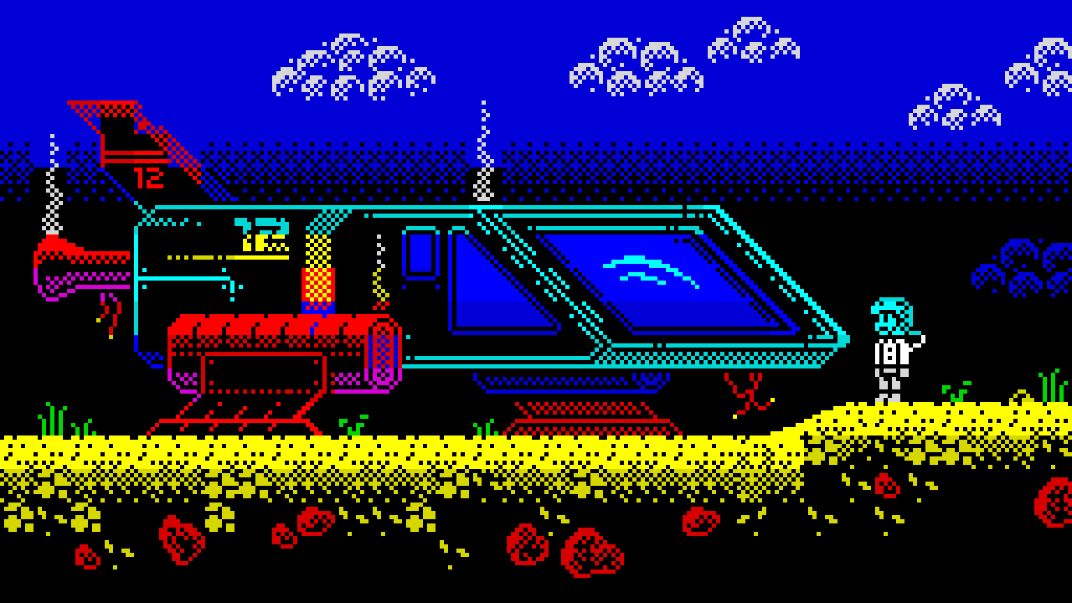 Из-за вот такого хитровыебанного строения экрана рисование на спектруме доставляет удовольствие - ты каждый раз решаешь головоломку, как разместить картинку на границах знакомест, чтобы раскрашенной она красиво смотрелась. Это весело, рекомендую.