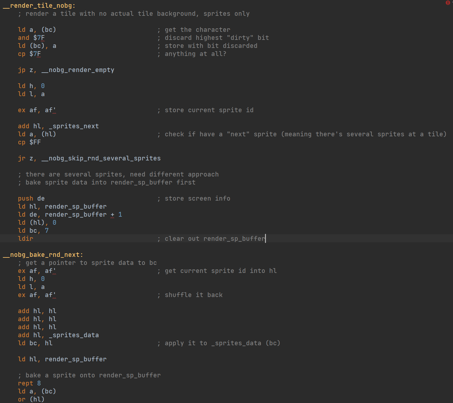 >>723640 (OP) > а то assembler вещь такая, что по глупости можно написать такой говнокод, что вонять будет даже на другой стороне планеты 21 век на дворе. Есть готовые движки. Только ресурсы подставляй. https://github.com/mojontwins/mk2