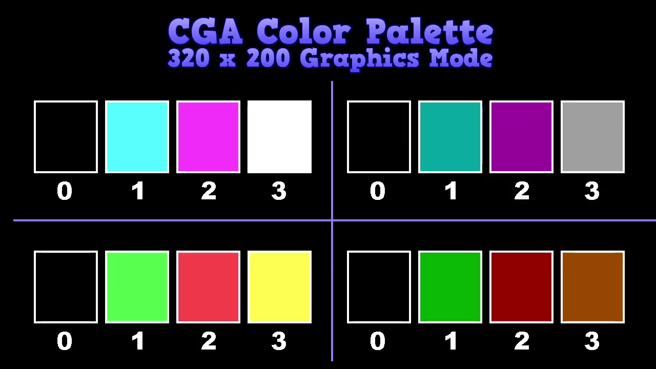 Никогда особо DOS не интересовался, поскольку там довольно быстро произошел рост до попиксельной графики, но узнал что во время CGA все еще пользовались некоторыми ретро трюками. Во фроггере заменяется цвет фона посередине кадра. Это дает возможность сменить воду на асфальт. В калифорнийских играх подменяется уже палтитра, с циановой на травянисто-земляную. Ну и была какая-то игра с майндфаком, недокументированными текстовым режимом, где рисуются только верхние 2 ряда пикселей символов.