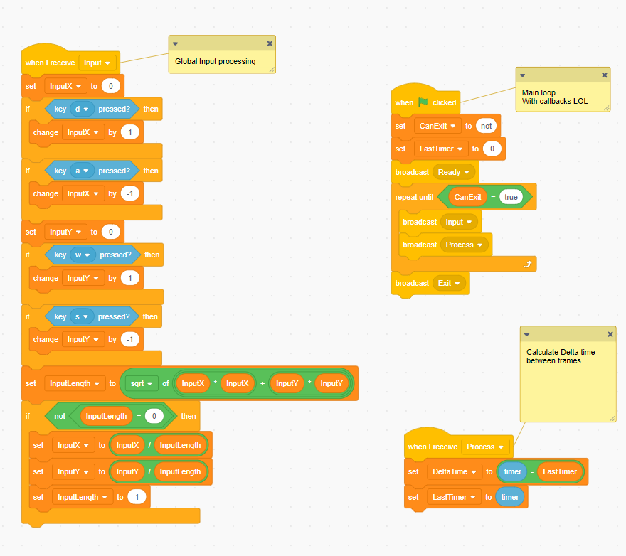 Первый работающий скрипт. Вот прям запускается и работает. Учитывая пожелания анона из треда, делаю высокоуровневые блоки. А можно сделать ещё более высокоуровневые, чтобы один блок заменял всё содержимое метода _process, например, то есть взять новый блок и тупо вписать туда целиком скрипт игрового контроля. Дать инпуты для настройки и готово. Чуть позже покажу.