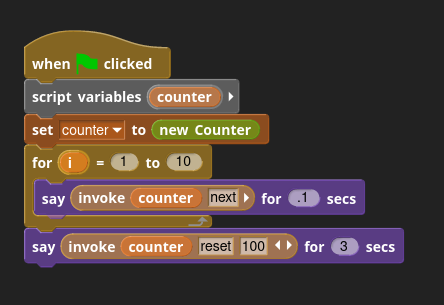 >>833024 > Щас буду думоть. Итак, вот что выдумолось на данный момент. Оказывается в Snap! имеется встроенная функция кодификации. Свою реализацию блочного языка пилить не нужно. Ты прописываешь текст для каждого блока, в том числе для самодельных блоков, и из этого текста генерируется код! Который можно сохранить!
