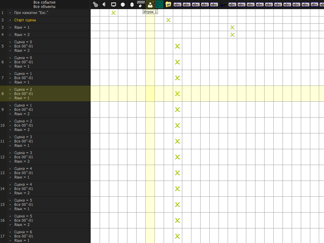 Поясняю за реализацию ал-я ВН сцены. Пока так, потом слегка буду рихтовать, чтобы отдельно грузить анимированные спрайты поверх задников и цг. 1) Вот эти дохуя строк с текстом, который хуёво видно - объекты string, у каждого из которых в отдельном абзаце прописан. На сцене заранее выставлен пустой string в который будет подгружаться текст из других. В зависимости от глобальной переменной, которую я установил для языка (1 - рус, 2 - англ) и в зависимости от текущей сцены, на которую зашёл игрок. 2) Чтобы это всё подгружалось, мы при глобальной переменной "Сцена", например, 2 каждую 0.01 секунды, если выбран язык 1 записываем в пустой стринг из стринга сцена2 рус. Аналогично такое же событие для второго языка, просто заменив цифры. 3) Получается у нас такая команда: Left$(string$( "сцена2 рус" ), Len(string$( "Выводимый текст" ) ) + 1 ) Это нужно для того, чтобы текст ещё и не просто загружался в пустой стринг, но и делал это постепенно, как в каком-нибудь ренпае. Поэтому мы и загружаем по 1 символу раз в 0.01 секунды. 4) У нас есть заранее созданный счётчик, который увеличивается на 1 при клике игрока по экрану. К нему привязан текущий абзац, который показывают стринги, это делается просто объеденив все строки в группу и заявив, что их текущий абзац всегда будет равен счётчику. Алсо, к этому счётчику мы привязываем текущую отображаемую картинку и текущего говорящего персонажа, просто оставляя условия, что "пока счётчик = N, текущий порядок анимации %пикча% = M и всё такое.