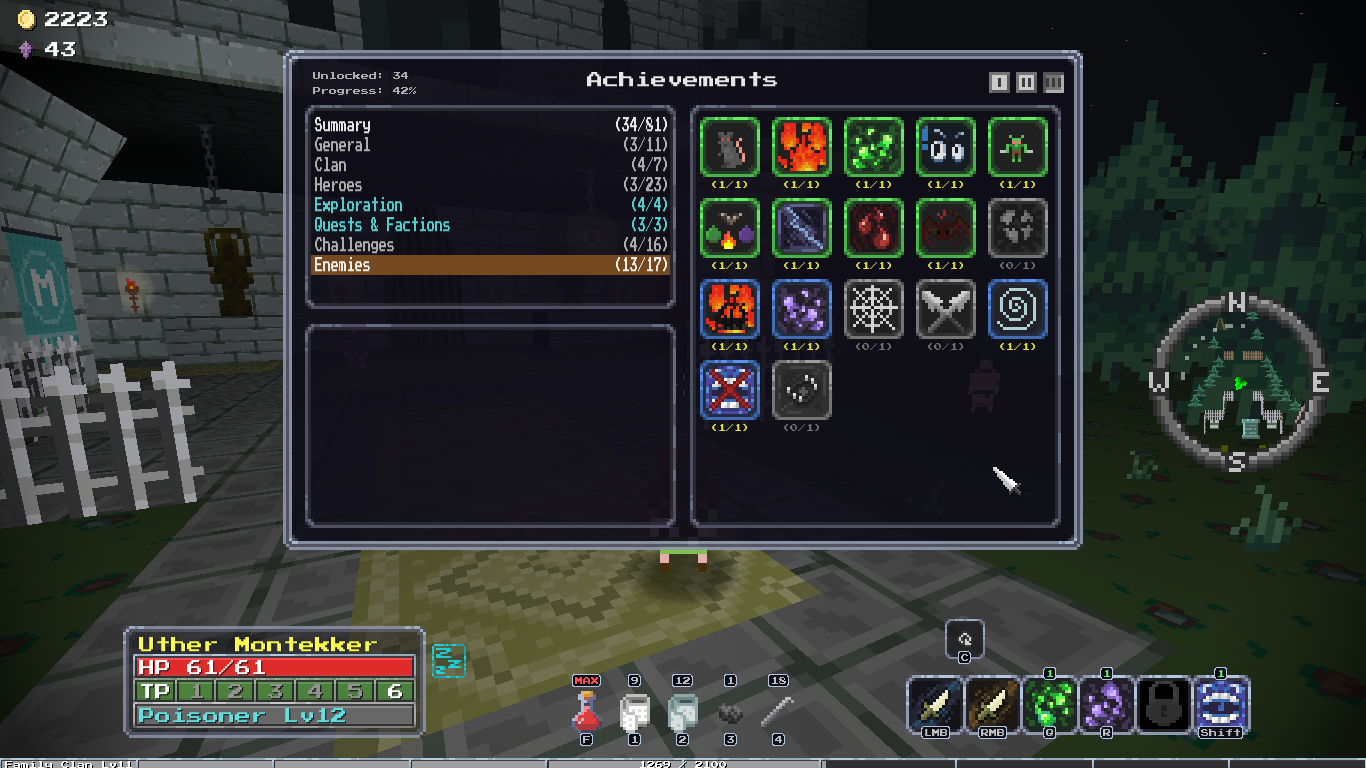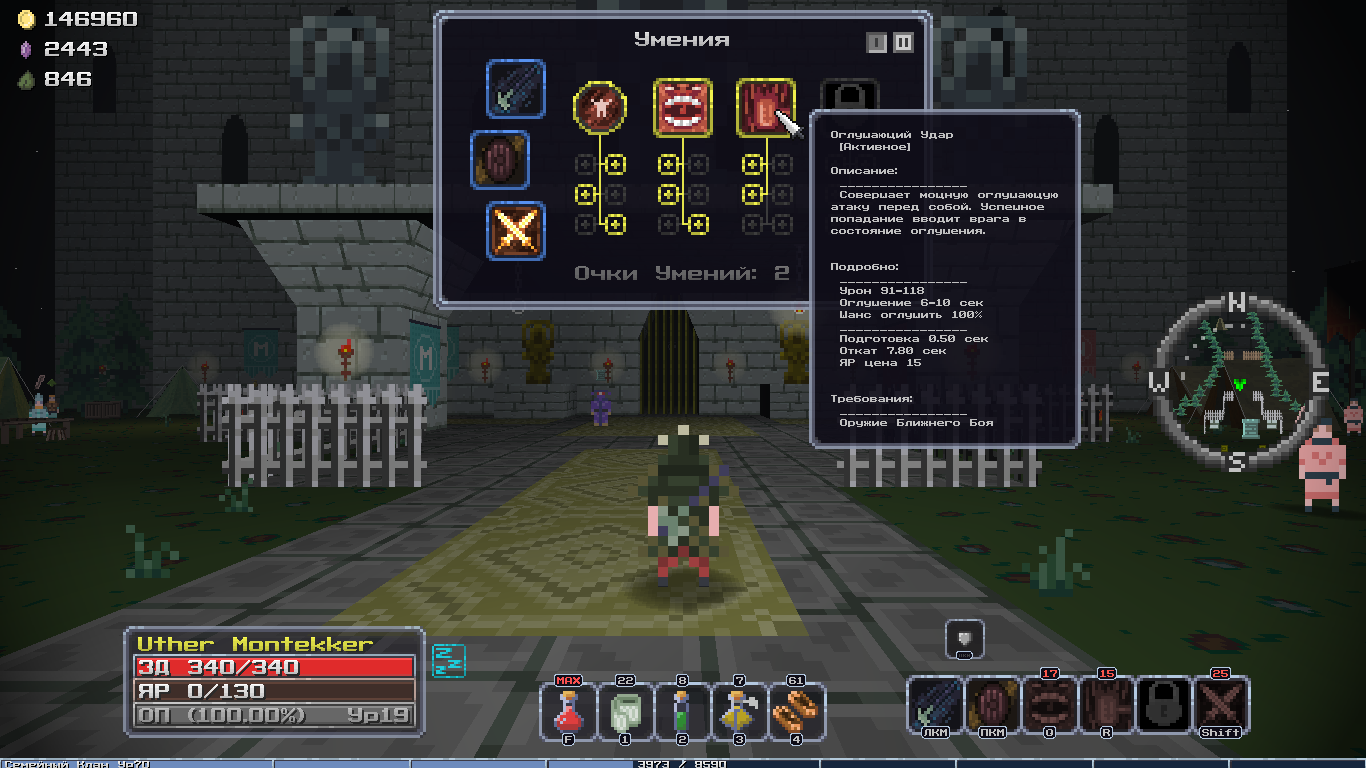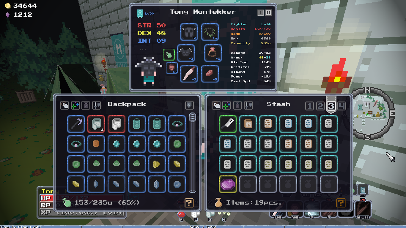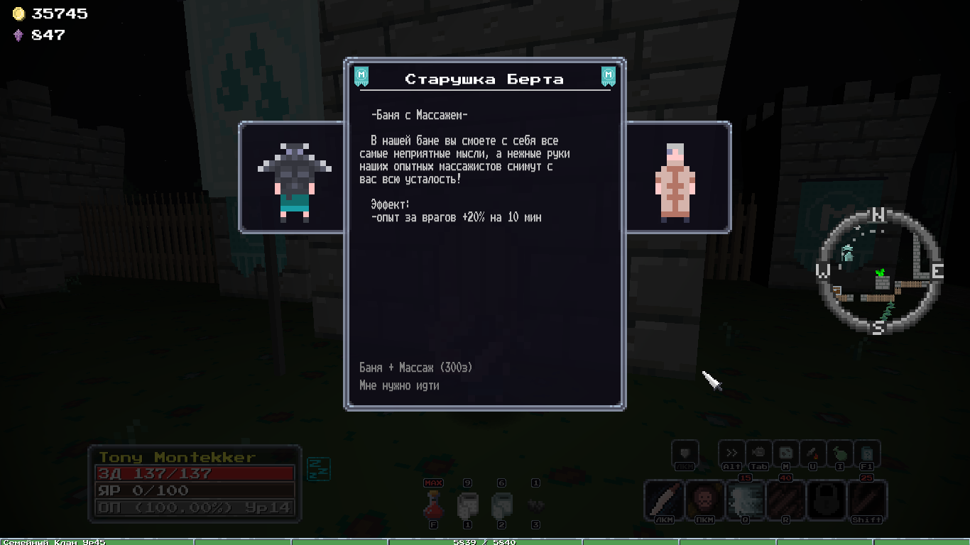 Добавил новый квест, после которого появляется новый алкаш торгаш в клановом имении, у него можно купить новую сумочку зеленого качества и цвета, пусть гоблоиды завидуют твоему стилю! А ещё добавил новую врожденную особенность, "Везунчик", 10% шанс двойного дропа с сундуков, шанс выжить самому +10%, редкая особенность.