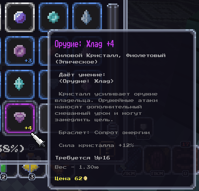 Добавил повышение качества силовых кристаллов путём слияния одинаковых. Теперь для любого силового кристалла можно будет добыть эпическую версию. Будет открываться после новой квестовой цепочки.