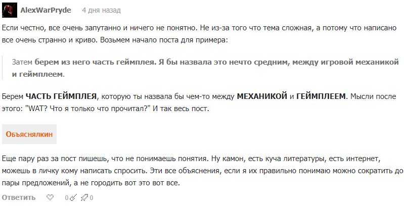 Вот бы и нам такое правило в ТВГ. Тогда бы хуита по типу флешеслава, слонов или ментала отлетала бы на заслуженную парашу. Все таки есть чему еще поучиться ТВГ у других джемов.