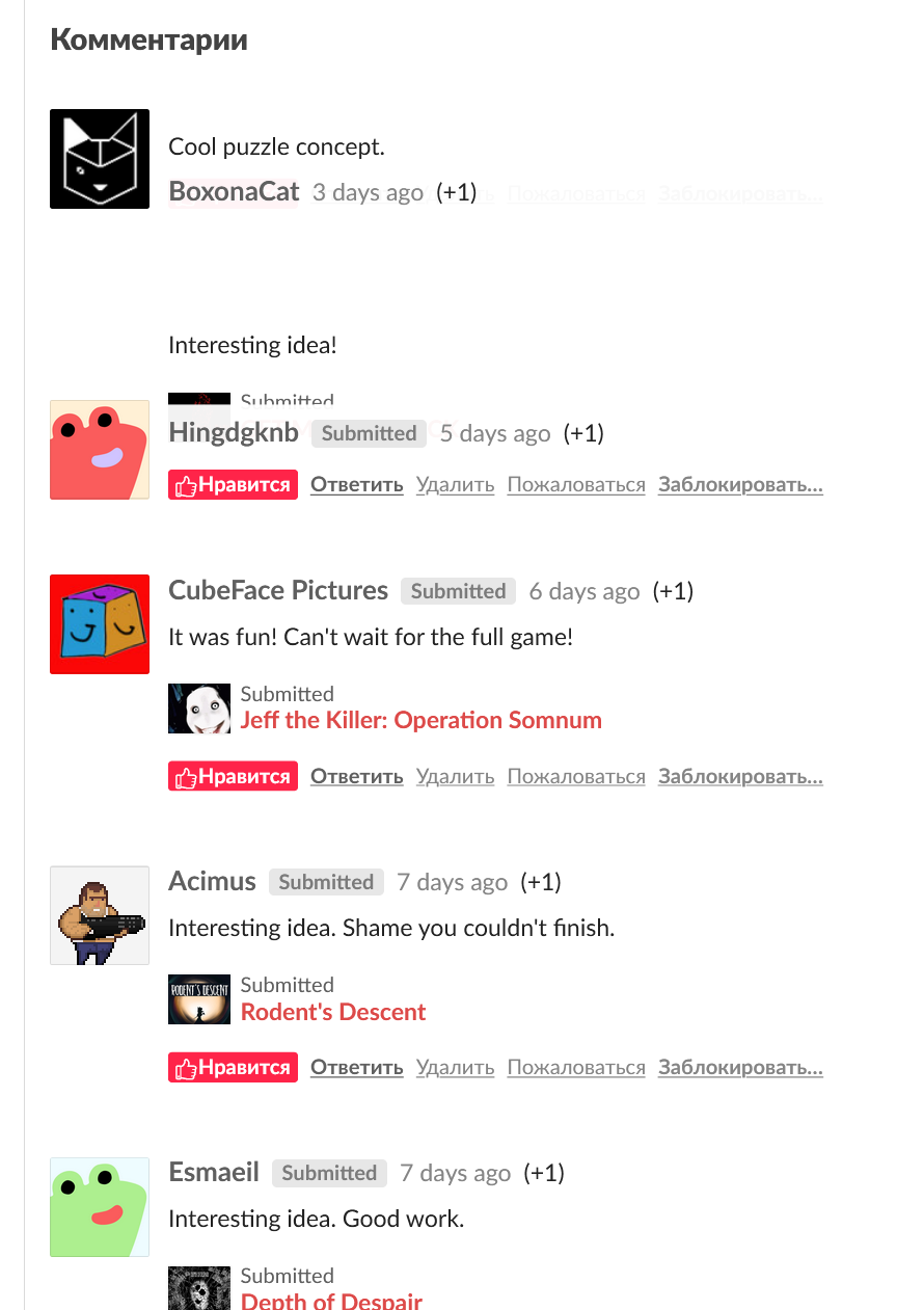 >Анонимность:Отключено >При включенной анонимности, пользователи не видят ники тех пользователей, чью игру они оценивают. Это способствует к более объективному оцениванию игр Ну блин... Срочно все 3,5 человека в треде там регайтесь и будем друг другу оценки надрачивать.