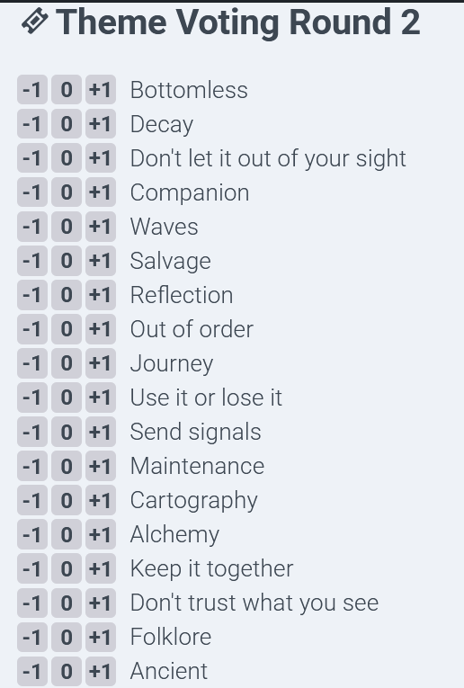 Поскольку участников становится так много что даже 6 экспертных, замечательных, легендарных судей уже не хватает, будем пробовать систему оценок в 2 этапа: До 27 октября все участники джема голосуют за проекты друг друга. С 27 октября до 1 ноября наши восхитительные судьи оценят 20 лучших и выберут победителя.