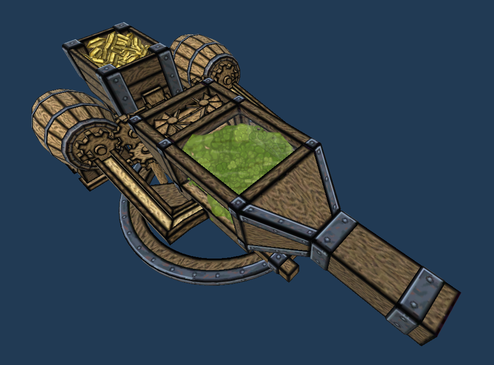 Задумался я тут, что таки маловато у меня пушек для первой сюжетной главы игры - баллиста да камнемёт с их улучшенными версиями это неплохо, но надо что-то ещё, что-то иного принципа действия. Что же мог бы такого ещё убийственного собрать наш гном из говна и палок? Ответ - распылитель яда. Пара бочек и ящик с реагентами, закрытый стеклом реактор и деревянные вентиляторы для выдува отравы - и смертоносный агрегат готов.