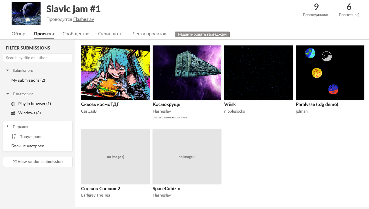 про выбывших мой космохрущь не участвует так ради кучки наложил SpaceCubizm - он прислал демку в поддержку джема космолёт вокругпланетный - это наверно чел с ссд погибшим