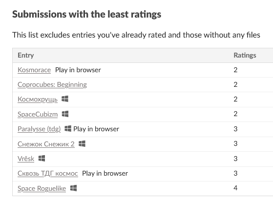Если в следующем геймджеме буду участвовать, то обязательно буду лить веб версию, если правилами разрешено будет. Так хоть приличные цифры набегают, ибо качать не надо и можно сразу в браузере потыкать.