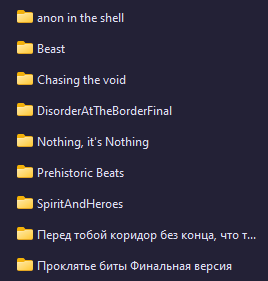 Chasing the void (В погоне за пустотой) Nothing, it's Nothing Bellydog --- Странное начало, Мультивселенная Снежка, ВСЁ Abyss 2 Heartless Killer Duck Souls --- Странный старт, ВСЁ Disorder at the Border Проклятье биты Anon in the Shell --- Странный старт Зверь Час Икс: Побег (Hour X: Escape) Перед тобой коридор без конца, что ты не видишь? --- Странный старт, Мультивселенная Снежка, ВСЁ Курьерский синдром --- ВСЁ TWG: UNITED (ВСЕ В СБОРЕ) NON STOP SPACE SHMUP ААА ОПОЗДУН Prehistoric Beats Spirit and Heroes Автостоп