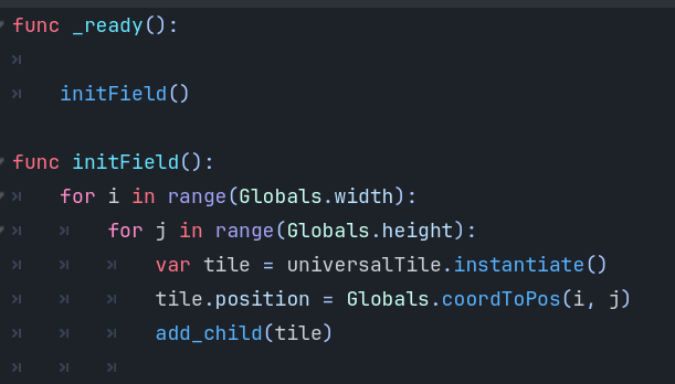 Ох, в общем, я заполняю поле тайлами, которые при входе в арею игрока меняют цвет. Заметил такую штуку, что это срабатывает только на нижней правой тайле в карте, то есть последней в цикле пикрил(при этом цвет меняется сразу у всей тайлов карты). Это как-то связано с моей функцией init, но как, думалки и опыта не хватает понять?