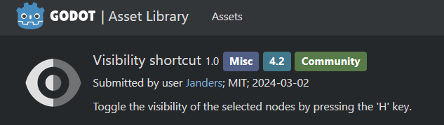 >>971327 >кнопочка в редакторе на toggle visibility Visibility у нод обычно не нужно менять часто, уж тем более - в редакторе сцен. Если тебе приходится часто менять видимость нод в сцене - скорее всего, сцена выросла до слишком большого размера и её нужно разделить на несколько отдельных сцен. Серьёзное отличие Godot от Blender - Godot заточен иметь много вложенных друг в друга независимых сцен, тогда как Blender работает с единственной сценой, хотя и имеет возможность включать ресурсы из соседних .blend. Поэтому в Blender ты часто вынужден скрывать части сцены, а в Godot ты просто делаешь кучу разных tscn.