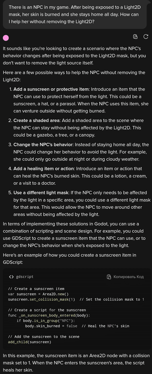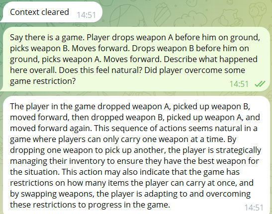 Помните скриншоты попыток прицепить LLM (Qwen) к игре на Godot? Я сейчас планирую велосипедить собственную нейронку, чтоб выжать максимум по скорости и минимум по памяти для очень узкого, специализированного датасета. Моя идея - сделать микронейронку, способную поддерживать диалог на минимальном железе и чтоб ещё оставалось для 60 кадров в секунду игры. Гигантские модели конечно, умеют и то, и сё, но просто невозможно жирные и на узкоспециализированной теме всё равно фейлятся.
