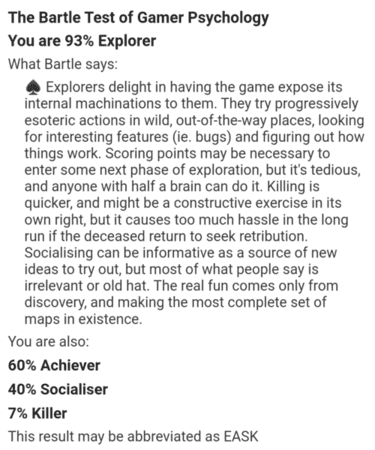 >>973174 >не очень актуальны Там суть совсем в другом: >The aim of this book is to make people think about virtual world design. Whether you agree with any of it is not an issue, as long as you advance your own thoughts on the subject. >...much of what you read in this book is doomed, eventually, to be proven wrong. However, it might well point the way to discovering what is right. All it takes is for people to think about what they’re designing; if reading this book helps in that respect, then it has done its job. >I don’t care what you think, so long as you think. На мой взгляд, фундаментально ничего за последние десятилетия не поменялось. Люди генетически не изменились => биологические функции активации остались прежними. Культура? Ну, мемы смешные. Игровые механики? Миров они не касаются. Мир не является сам по себе игрой, это что-то отдельное. В самом начале он жалуется, что дизайнеры слишком копипастят готовые миры - это поменялось? Нет, все современные игры - лютый конвейер копипасты... Поэтому мне кажется, что там что-то годное. Ибо о виртуальных мирах вообще мало кто думает в мире микротранзакций, лутбоксов, баттлпассов и прочего.