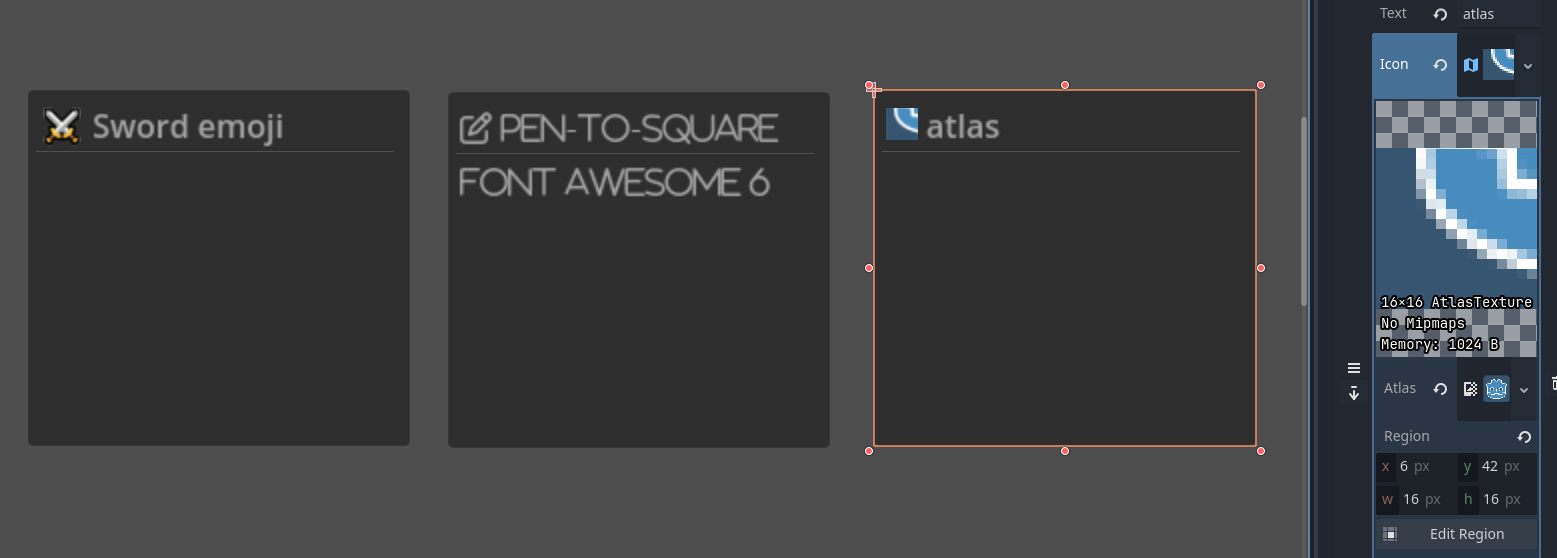 >>973322 Не очень понятен твой вопрос. Можно использовать эмодзи в тексте. Можно использовать шрифты с иконками, вроде font awesome (но надо придумать как скомбинировать с обычным шрифтом) Можно использовать текстурный атлас, чтобы показывать только регион текстуры - можно нарисовать все буквы на одну текстуру и скриптом автоматически нарезать.