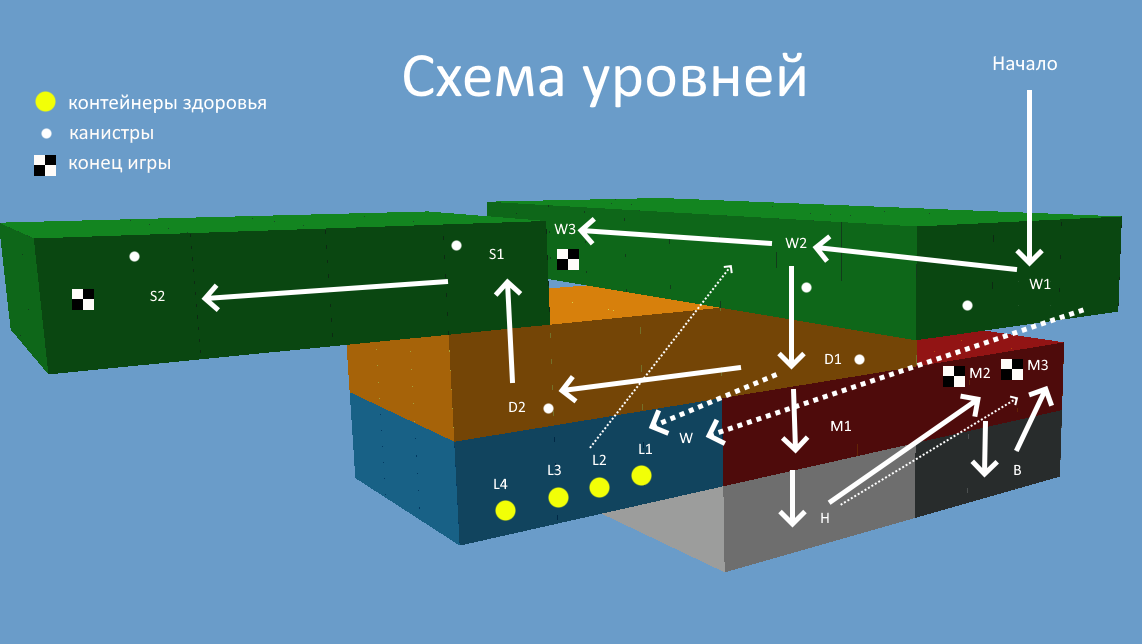 Гораздо больше меня увлекает геймдизайн и создание игрового геймплея. Те, кто знаком с классической The Legend of Zelda и прошел ее подземелья, хорошо понимают, что значит настоящий, проработанный геймплей в играх. Когда я занимался разработкой геймплея для своей игры, то сначала даже не осознавал, что именно делаю. Теперь я вижу, что вся игровая карта представляет собой один большой "данж" с элементами метроидвании. Игрок сначала продвигается вперед, сталкиваясь с загадочными объектами, смысл которых поначалу непонятен. Пройдя до конца, он обретает новую способность и возвращается к началу, открывая ранее недоступные места. Дальше игрок зачищает всю карту, продвигаясь к финальным боссам.