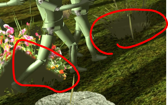 >как их можно маскировать? Спрайтами травы, ветками и кучками рядом со спавном деревьев, например. Либо не делать так, чтобы они совсем оторвано от ландшафта выглядели. Поставь себе уже УЕ4 и скачай бесплатные сцены и посмотри как там сделано. Я уже не говорю пересаживаться на уе, но хотя бы подсмотри как такие вопросы решают крупные конторы и реализуй у себя. Ну или игры новые скачай и там глянь.