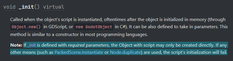 >>985762 >var script: Script = load("res://script.gd") >var object = script.new(args) Тоже самое. Ошибка, что new не принимает аргументы.
