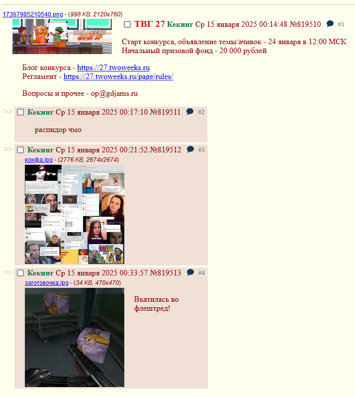 Согласен. В блоге конкурса пиарят какие-то конфы, треды на других бордах, в частности ычано-парашу. И все это висит в закрепе.
