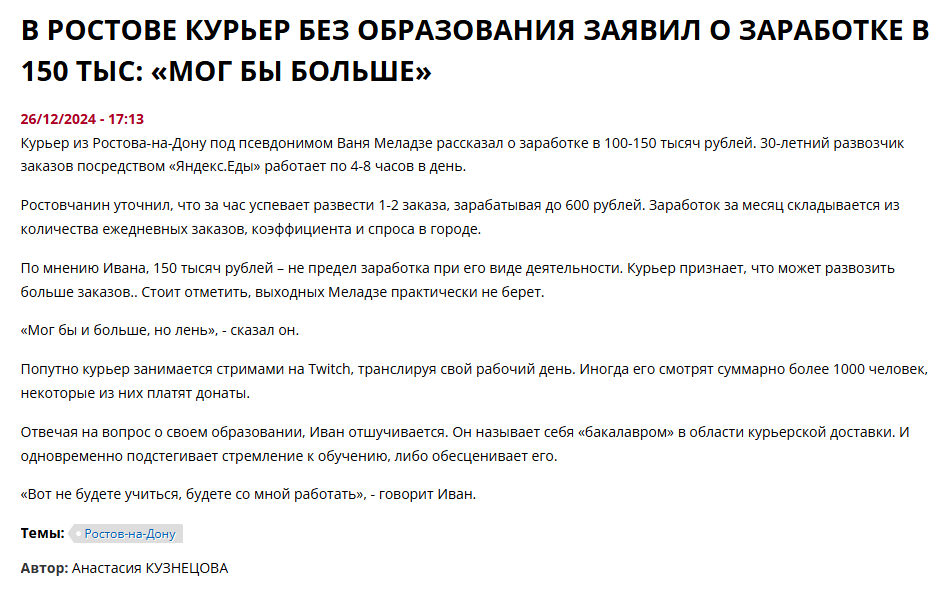 >>995695 >Курьеры зарабатывают по 100-150 тысяч в месяц. Чел 99.9% мужиков за такие бы бабки убивали, а не то что курьером бегать. Если бы это было реально, то все бы в деньгах купались. А так сидят пердят за 20к в месяц.