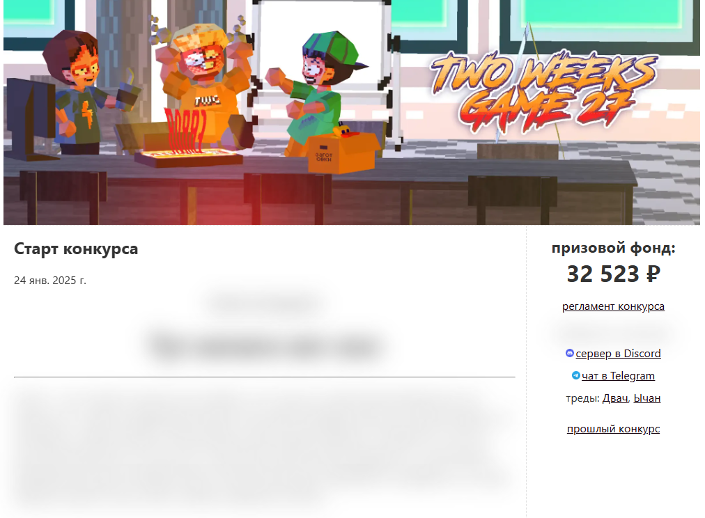 Старт конкурса, объявление темы/ачивок - 24 января в 12:00 МСК Начальный призовой фонд - 20 000 рублей Поддержать конкурс - https://www.tbank.ru/cf/1qNUy9Lmhvb