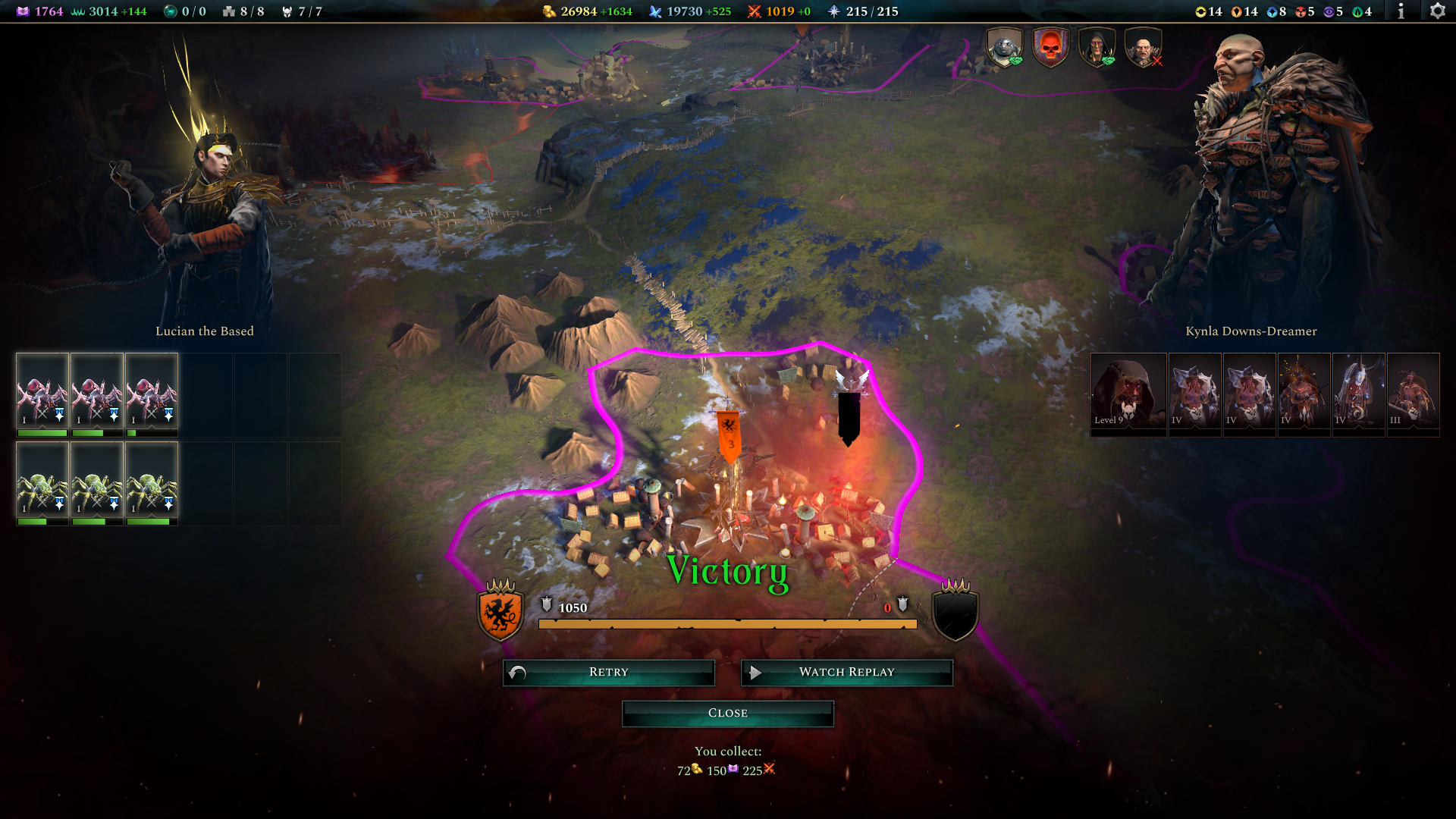 - через магию - качаешь магию, потом строишь 3 постройки и защищаешь их от спавна армий (прям, как в Total War: WARHAMMER II). Параллельно тебе объявляют войну все "игроки" на карте (в моем случае это ИИ). Справился? Молодец, ты победил!