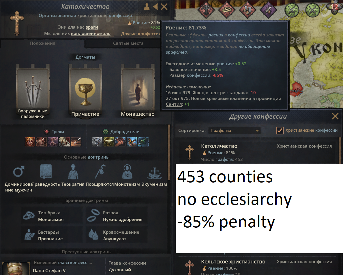 В третьих отдельный пункт про трибалов - в СК2 я любил ими играть - грабить соседей, вкладывать награбленное в свои земли..в СК3 при переходе из трибалов в феодала ты теряешь всё что построил трибалом, буквально 300 лет игры обнуляются и ты становишься голожопым нобелем в пустом замке, который ещё и в придачу не может содержать даже половину профессионалов.