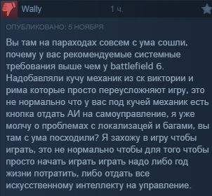 И вот десять причин, почему. 1.Нет колонизации Азии. Игра про историю нового времени, где единственный способ заделаться азиатскими колониями – это буквально прийти со всей армией и нахер десятилетиями (а столько и длятся иногда войны в лейте) отражать орды бесконечных гуков, и всё для того, чтобы оттяпать дачу лесника, ведь не забываем ещё про коалиции, ну да блять, в 18 веке азиаты, конечно, были сплочёнными, как никогда, и вместе отражали внешнюю угрозу, разрабы хоть пробовали открывать учебник хистории? (И прежде чем завоют анимешники и прочие пососы ускоглазых, я скажу так: ничто не мешало разрабам добавить два режима, в одном нагибают азиаты, в другом - гейропейцы). 2.Нет дипломатии. Ни тебе временных союзов по интересам (когда союзишься с немцами, например, чтобы разделать ляхов, пусть у вас и не лучшие отношения), ни марионеток нормальных, ни логики (самый тухлый карлик будет воевать с тобой, несмотря на то, что у него нет шансов, вместо того, чтобы отдать всё просто так), ни адекватной механизма престижа. В целом то, что вся дипломатия завязана на явно показываемых циферках, а не догадках и рандоме – это тоже сочный плевок разрабов в сторону здравого смысла. 3.Нет экономики. Нельзя обрушить экономику врага за счёт своего производства, как сделала Англия с Францией в 18 веке. Нельзя люто поднять налоги и получить революцию. Инфляция – не угроза стране, а циферка, убираемая другой циферкой. 4.Война в конце игры – душная залупа. Состоит целиком из того, что ты берёшь армию, вручную, водя мышкой, перетаскиваешь её по частям на новое место, собираешь перед сражением, затем снова разбираешь на куски. Зачем? А чтобы солдаты не дохли при преодолении лимита снабжения, ведь логистику придумали в 1821 году. Войны длятся десятилетиями и представляют из себя мясорубку вроде первой мировой, но только без фронтов, у кого больше быдла в армии – тот и победил, даже если у врага космодесантники. 5.Флот – бесполезная побрякушка, нужен только, если хочешь колонизировать или захватить Бриташку. В реальности морское сражение могло изменить ход истории, потому что снабжение, переброска войск и торговля более всего удобны по воде, здесь же нет ни снабжения, ни переброски (потому что местные ваньки бегают по горам и пустыням с не меньшим энтузиазмом, чем по удобным дорогам в хороших провинциях), ни, ясное дело, торговли (если заблокировал порты врага хоть на столетие, ему похер, его экономика не пострадает от этого почти). 6.Восстания – самый уёбищный кал в этой игре. Они не способны нанести вред тебе, а только выбешивают своими постоянными появлениями. Самое противное, что при таких восстаниях ты должен поднимать финансирование всей армии, какая только у тебя есть, даже если там два с половиной бомжа восстали из-за повышения цен на водку, т.е. выборочно держать несколько армий готовыми к бою ты не можешь (представляете картину нахой: утро, провинция Йорк, солдаты мирно спят в казарме, и тут врываются какие-то чепушилы, поднимают всех и орут, что В ТРИНАДЦАТИ КОЛОНИЯХ ВОССТАЛО ПЛЕМЯ ХУЕНОГИХ БОБРОКЛЮВОВ, ПАНИКА, ТРЕВОГА, СРОЧНОЕ ВОЕННОЕ ПОЛОЖЕНИЕ ПО ВСЕЙ ИМПЕРИИ. И солдаты ведь послушаются – шведские садисты просто не оставляют им выбора). 7.Игра так и не смогла определиться, чем она является: симулятором истории Нового Времени со всем её весельем или киберспортивной дис